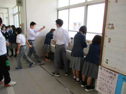 食事前の手洗いの様子です。1年生,順序良く並んで手洗い場が空くのを待っています。