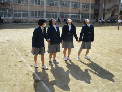 3年生の女子が出てきたので「今日は影送りができるんじゃないか」と言ったところ,早速やっていました。上手く見えたかな!