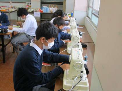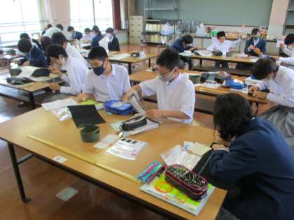 2組は家庭科です。スウェーデン刺繍のブックカバーが出来つつあります。