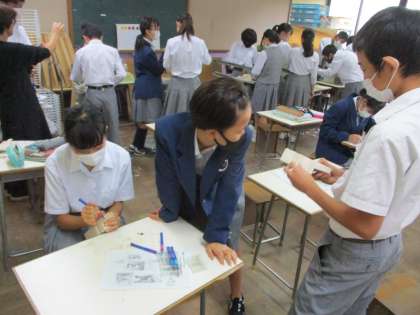 塗り絵をしている人と木彫(木材彫刻)をしている人とが居ました。