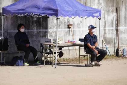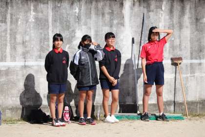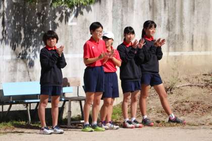 応援の人たちも一生懸命です。団体戦は,試合に出場する人と応援する人とが一緒になって戦います。