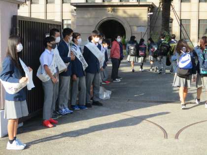 友達が立候補しており,朝から頑張っている姿を見て声を掛けている生徒がたくさんいました。