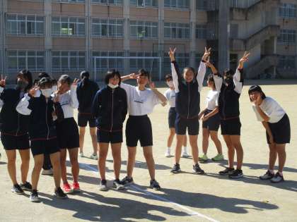 始業まえに行ったところ「写真を撮ってください!」と生徒たちが集まりました。