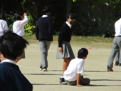 「昼休みにこんなにたくさんの生徒がグランドで遊んでいるなんて…。しかも,多くの先生方も一緒に遊んでいる場面を観て驚きました。素晴らしい学校ですね。」