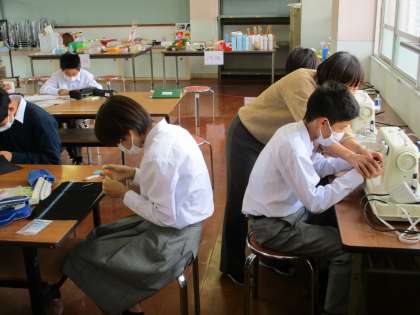 2組は家庭科。スウェーデン刺繍を頑張っています。