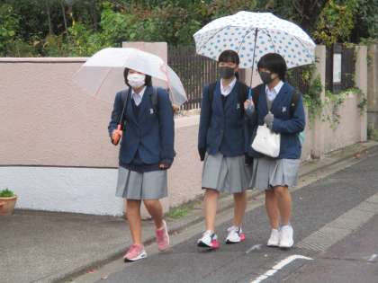 生徒たちは,雨降りを楽しむかのように登校してきました。