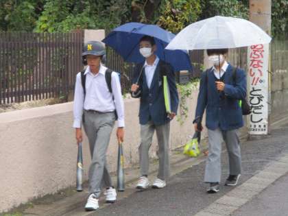 ちょうど生徒の登校時間帯にぶつかってしまったのが困ったものですが,それでも膝から下が濡れるほどの降りではなかったのでまだよかったです。