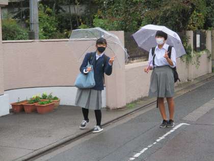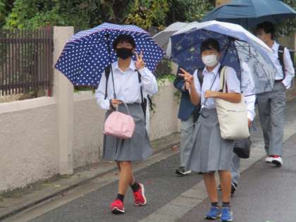 そんなことを感じさせない笑顔での挨拶,うちの生徒たちは爽やかです。