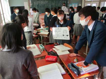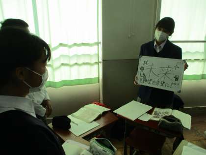 国語の時間の様子をしばらく続けます。グループごとの発表の練習を観ていても面白かったです。
