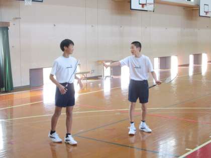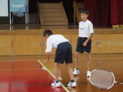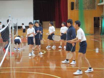 2・3組の男子はバドミントン,こちらも楽しくやっていました。