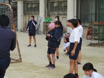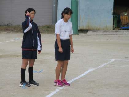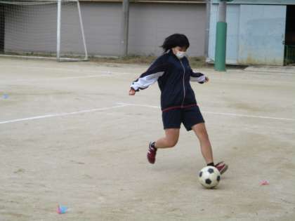 女子はサッカーです。今日はシュートのテストがあったようです。