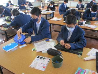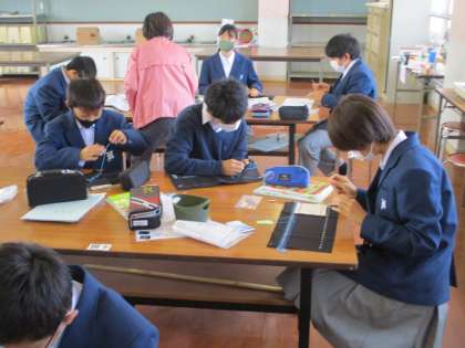 2組は家庭科,スウェーデン刺繍が続いています。