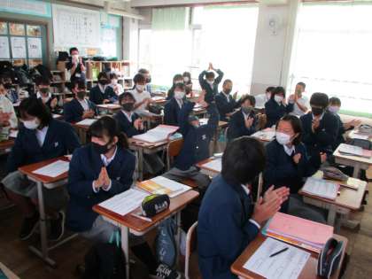 1組は英語,5組は数学です。英会話の場面では,生徒の口から慣用句がスッと出てくるようになっていて感心しました。