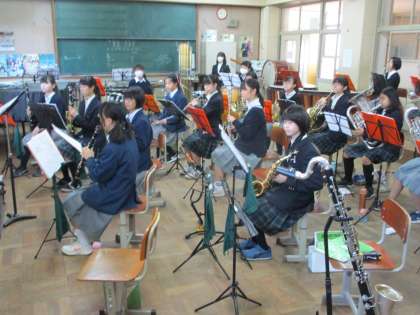 今日は吹奏楽も合同練習です。先日,京都堀川音楽高校で一緒に演奏した縁でしょうか,中京中学校の人たちが来てくれていました。