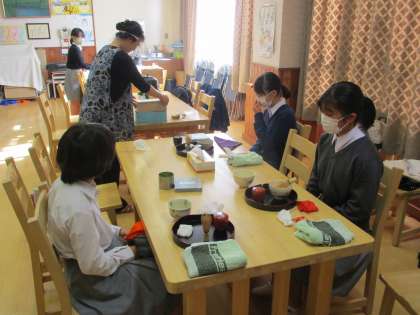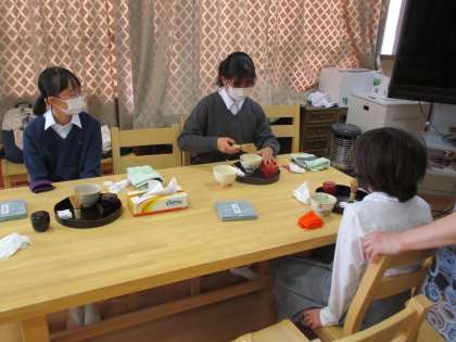 遅ればせながら,昨日行われた11月の「茶道体験教室」の様子を紹介します。