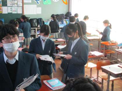 課題が与えられ,それを先生の所へ行って披露しているようでした。