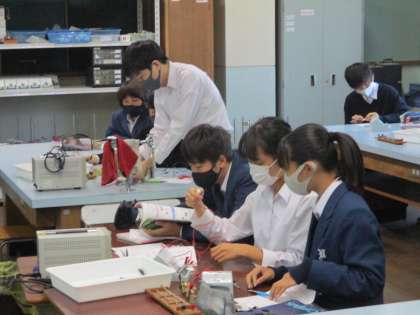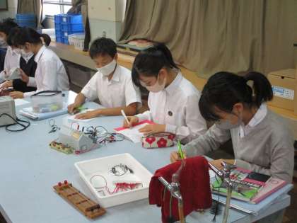 5組は英語,2組は理科です。今日は何の実験でしょうか。とてもいいムードで学習していました。
