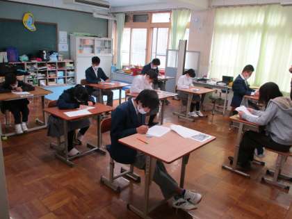 まずは6組です。国語の聞き取りテストです。先生の言うことをメモを取りながら聴き,そののちに問いが出されます。