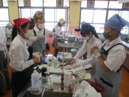 1組は家庭科,久しぶりの調理実習です。