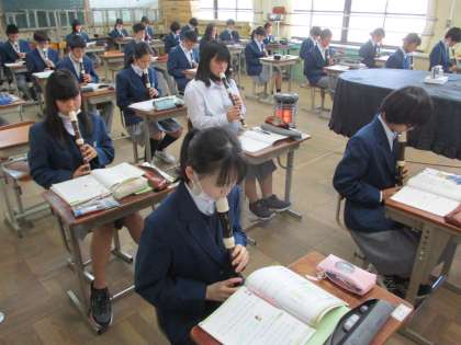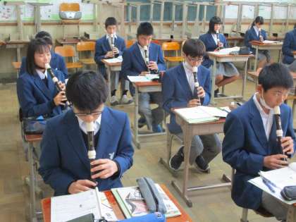 3組は音楽,アルトリコーダーの練習でした。