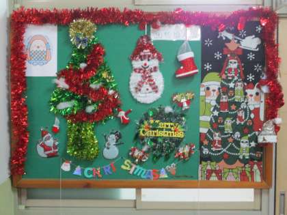 保健室と用務員室の前のデコレーションがクリスマスバージョンに変えられました。楽しいですね。そういう季節になってきたんですねぇ。
