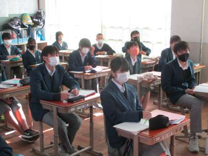 関係代名詞の学習で,該当する人をクラスの中から選んでいました。