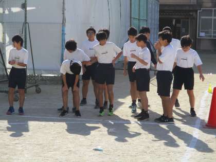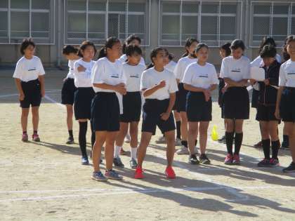 1・2組は体育,持久走です。さあ,スタート。 がんばれっ!