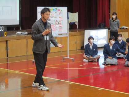 生徒たちは自分たちで考えた経営の方針を一生懸命伝えていました。