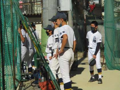 野球部は講堂でのキャッチボール選手権が終わったのち,西賀茂中を相手に練習試合です。