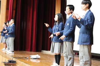 みんな,真剣に取り組みました。歌声もしっかり響いていました。1年生も下の階で頑張っていたと聞いています。