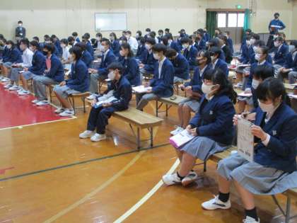 6時間目,2年では在日韓国人の先生をお招きして講演を聴かせてもらいました。