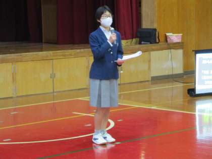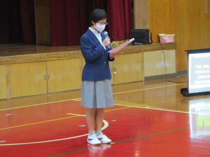 続いて6組ですが,今日は学年代表の生徒がコメントとを代読をしました。
