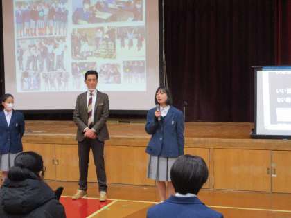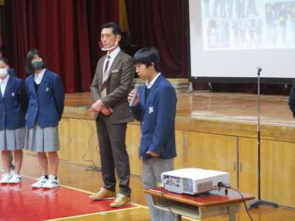 学校長の話を受けて,1・2年生が感想や決意を述べに前に出てきました。