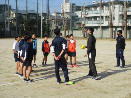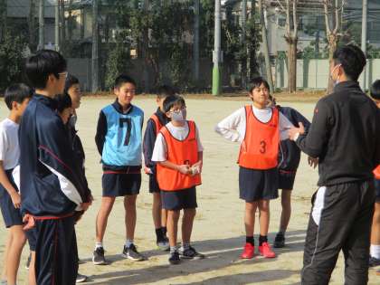3・5組は体育です。男子はハンドボールに取り組みます。
