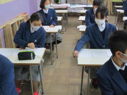 2組は美術です。いよいよ“こいのぼり”のデザインを生地に写していきます。