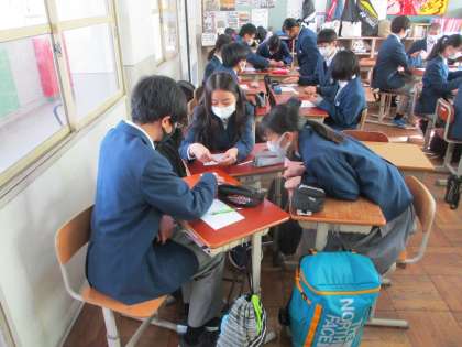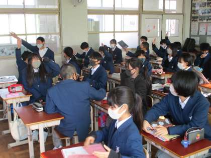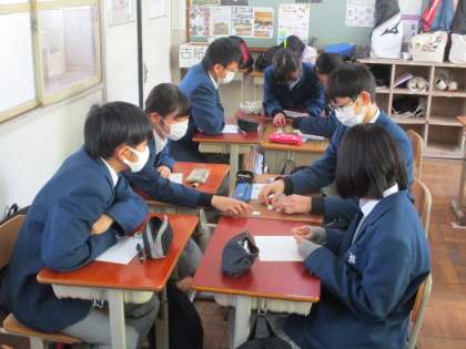 2年からは1組の理科と3組の英語の様子から紹介していきます。
