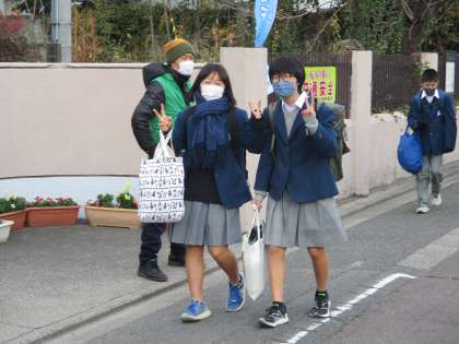 今日は1月のあいさつの日です。生徒会の役員,委員会の人たちの他,PTAや地域の方も朝のあいさつ運動に参加してくださいました。