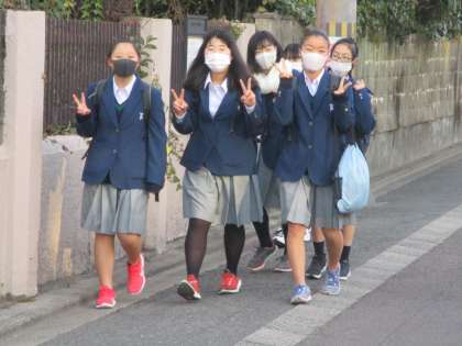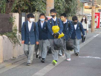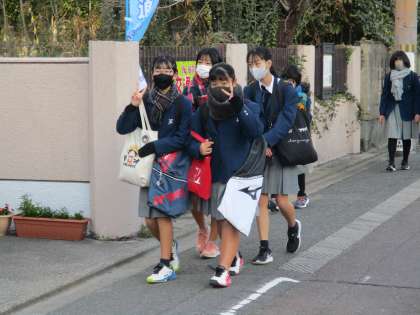 生徒たちは,校門付近の人の多さに少々驚きながらも,今日も元気に登校してきました。