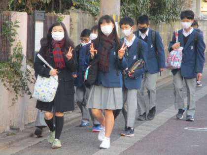 というのも,校門や交差点に立って挨拶をしている生徒がたくさんいるからです。