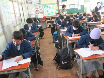 今週から1・2年では難聴学級の生徒の一斉交流期間になっています。約1か月間,通常学級で過ごします。周りに生徒が多いため,より聴き取りにくくなってしまいます。