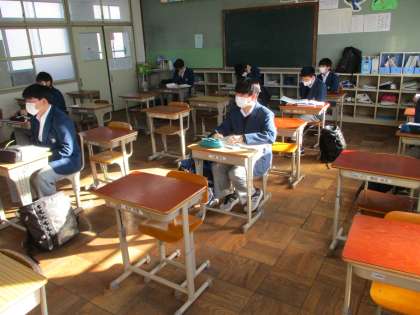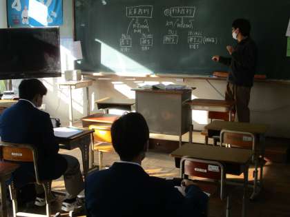 こちらは,年末にリモートによる授業を受けていた3年1・2組の生徒たちに対する,所謂“補講”で,教師主導で進めています。