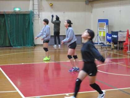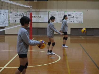 講堂ではバレー部が練習を始めています。