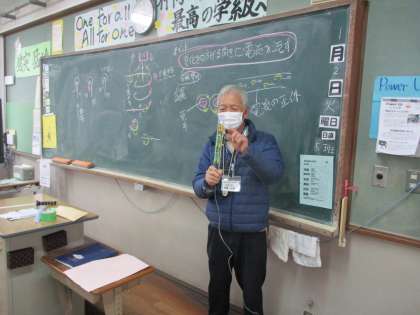 理科の授業では,「交流電流」と「直流電流」の違いの演示実験をされていました。