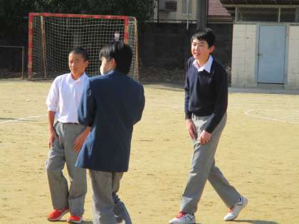 みんな,楽しそうに走り回っています。この様子を観るだけで今の二条中学校を理解してもらえると思っています。