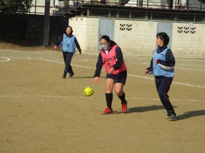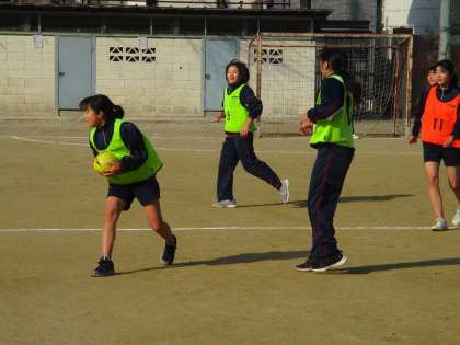 1・2組は体育です。女子はハンドボールに熱心に取り組んでいます。