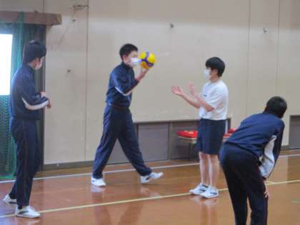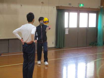 男子はバレーボールです。女子ほどは続きません。上手な人はいるのですが…。