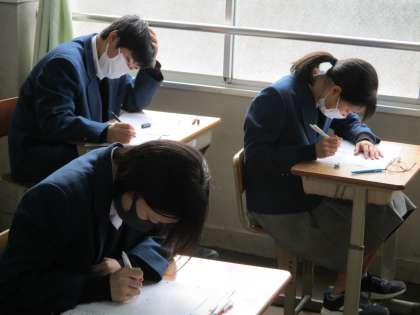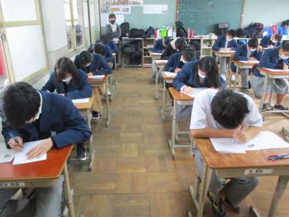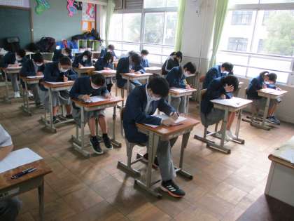 5組の生徒も交流学級で受験しています。みんな,受験本番さながらで頑張っていました。