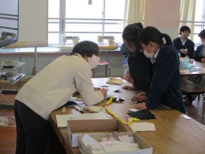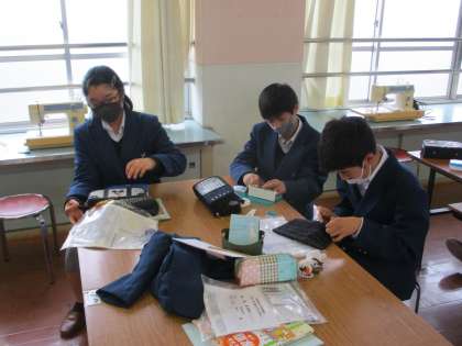 2組は家庭科です。こちらもスウェーデン刺繍のブックカバーが完成に近づいています。