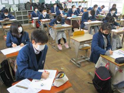 1組は理科です。ノートの達人たちが,今日もまた素晴らしいノートを作っていました。ところで,今日は「力」のところです。N(ニュートン)を使った計算,保護者の皆さん,難しかったのを覚えているんじゃありませんか。