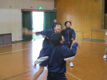 1・2組は体育です。男子のバレーボール,上手になってきました。